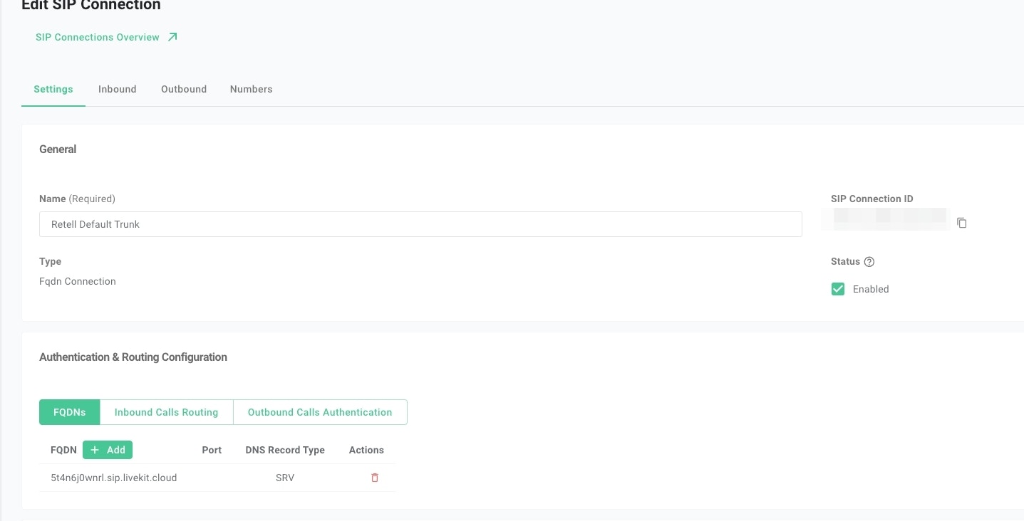 - Add FQDN Add the FQDN of PreCallAI’s SIP server: